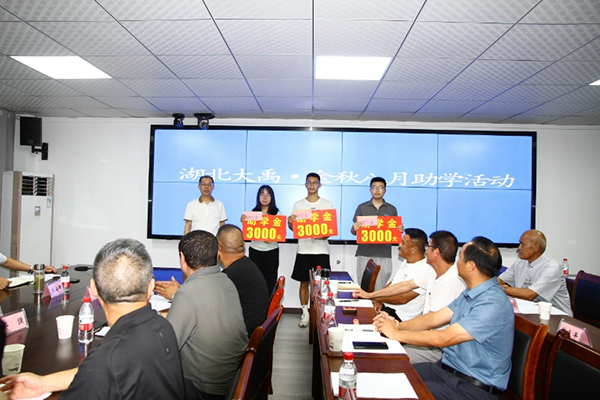 为响应房县县委、县政府在建项目爱心企业金秋助学的号召,弘扬大禹铁军线上棋牌平台网的文化,助力贫困学子顺利完成学业。公司总经理袁水斌,董事、副总经理王华才,监事会主席郭强赴房县白鹤镇政府参加金秋助学活动。县水利和湖泊局副局长谢翔珩、白鹤镇镇长唐盛波,项目指挥部办公室主任刘安群,第四工程公司负责人,项目所在村书记、资助学子及家长代表共四十人参加此次助学活动。