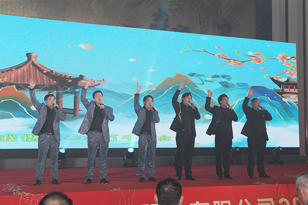 晚会在开场舞《圣金龙蛇》中正式拉开了序幕。歌舞《恭喜恭喜》、舞蹈《桃花坞》、儿童独唱《如愿》、诗朗诵《水利人之歌》、女生独唱《走进新时代》、弹唱《水手》、团体舞《好运全都来》、合唱《上春山》、黄梅戏《牛郎织女》、《女驸马》、男生独唱《花海》、歌舞《满城烟花》、舞蹈《和谐中国》等节目赢得现场观众的阵阵掌声,台上台下,欢声笑语连成一片。现场的抽大奖环节更是让团拜会高潮迭起。 晚会还播放了公司重点项目拜年视频,进一步展示了大禹人对公司的赤诚之爱和衷心祝福,誓用实际行动绘就大禹公司宏伟新蓝图。