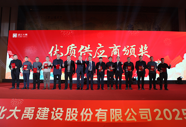 晚会上,公司董事长周运奎、总经理袁水斌、副总经理余建华向2024年度工作中,展现品质卓越、服务优质的12家供应商,颁发了优质供应商荣誉奖。